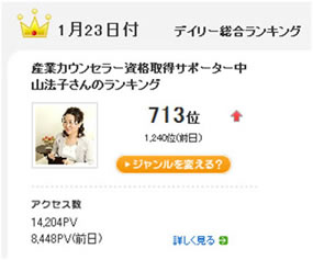 これらを駆使して、2010年5月時点で900万人の登録者がいるアメブロにおいてデイリー総合ランキングで1000位切りもされたご経験をお持ちです。