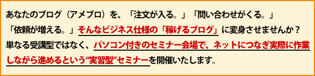 “その場で改善”アメブロ実習セミナーを開催いたします。